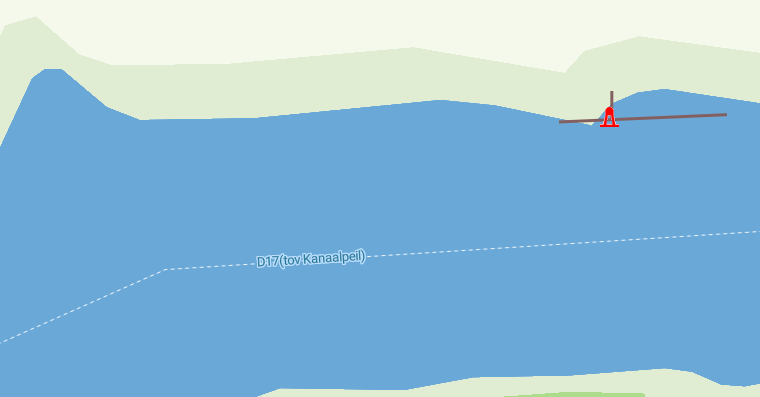 Voorbeeld van minimale diepte van de vaarweg bij Grou. Deze vaarweg heeft een diepte van 1.7 meter (17dm)